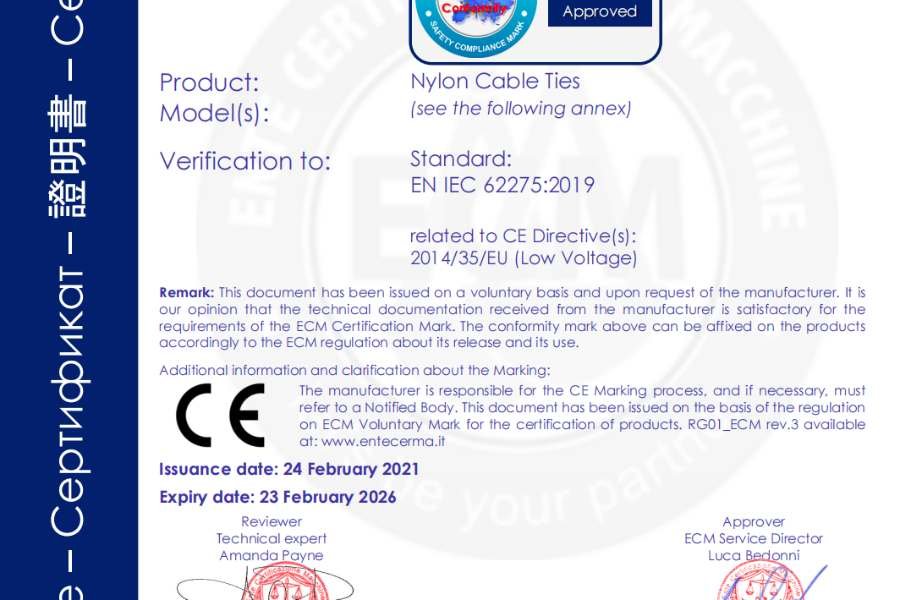 All of our cable ties meet international standards, with UL, RoHS certifications, and technical support available.